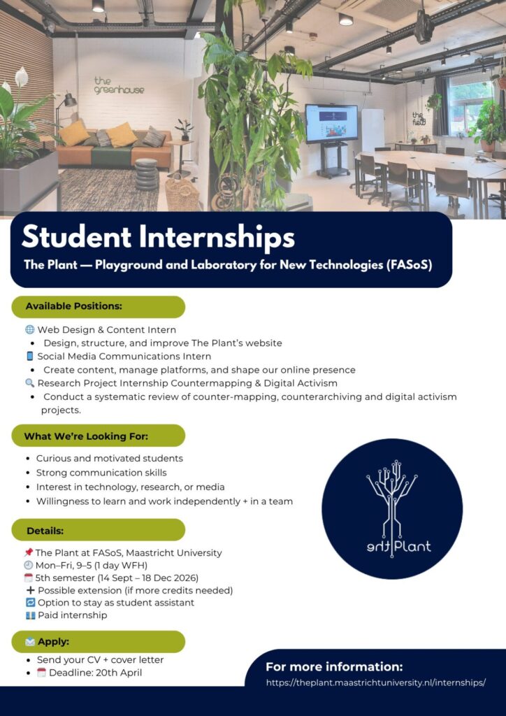 Email The Plant (plant-fasos@maastrichtuniversity.nl) or use our Contact Form to apply.